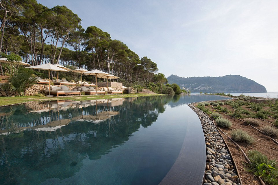 Khách sạn Pleta De Mar, Mallorca, Tây Ban Nha: Pleta De Mar có 3 bể bơi ngoài trời, trong đó, bể bơi đặc biệt nhất nhìn về phía biển được cây cối bao quanh, có viền bể bơi được thiết kế chạy theo đường cong của bờ biển Mallorquín mang đến không gian lãng mạn hoàn hảo bao quát khung cảnh đảo Balearic Mallorca.