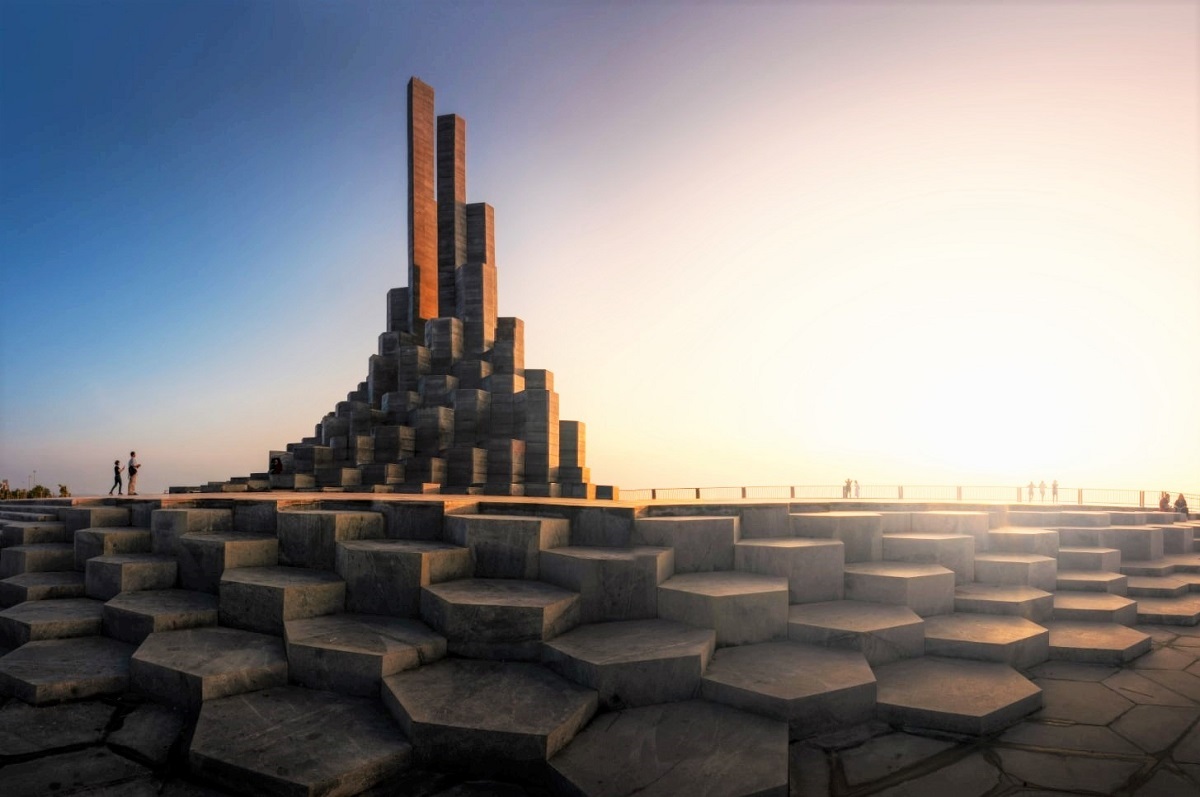 Ngay tại quảng trường Nghinh Phong thuộc thành phố Tuy Hòa của tỉnh Phú Yên có một công trình kiến trúc đặc biệt mang tên Tháp Nghinh Phong. Sự độc đáo của công trình này được hình thành nên từ vẻ đẹp của Gành Đá Đĩa. Tháp được tạo nên từ vô số khối đá có hình trụ được xếp chồng lên nhau và tô điểm thêm rất nhiều hoa văn tinh xảo, độc đáo. Hiện nay công trình này là địa điểm mà rất nhiều tín đồ yêu thích sống ảo săn đón.