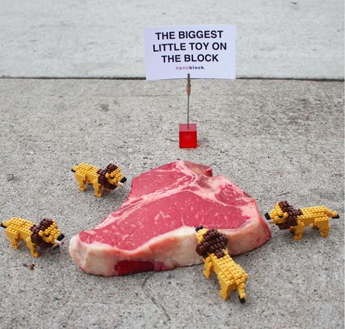 Có hàng tá món đồ chơi nhỏ kiểu này được bày trên các con phố và thu hút sự chú ý của rất đông người qua đường. Đây là quảng cáo của hãng Nanoblock chuyên về đồ chơi xếp hình.