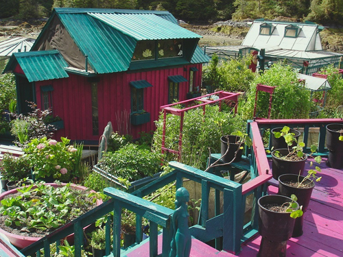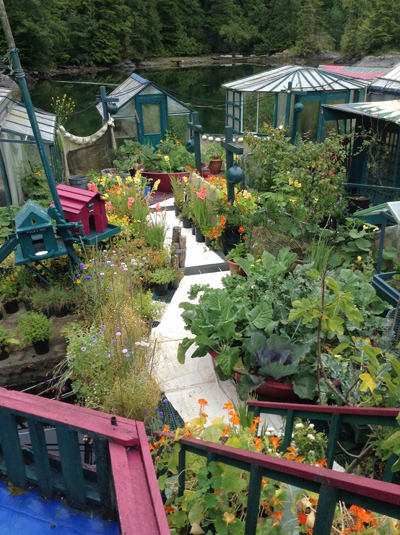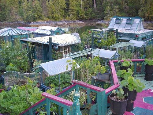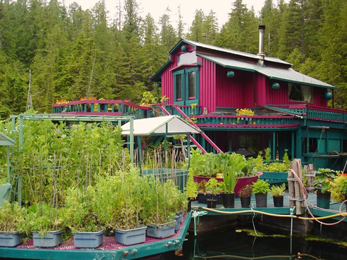 Khu nhà nằm trên mặt nước ở Canada trồng nhiều rau, hoa lá và tự sản xuất điện năng phục vụ cho nhu cầu của gia đình.