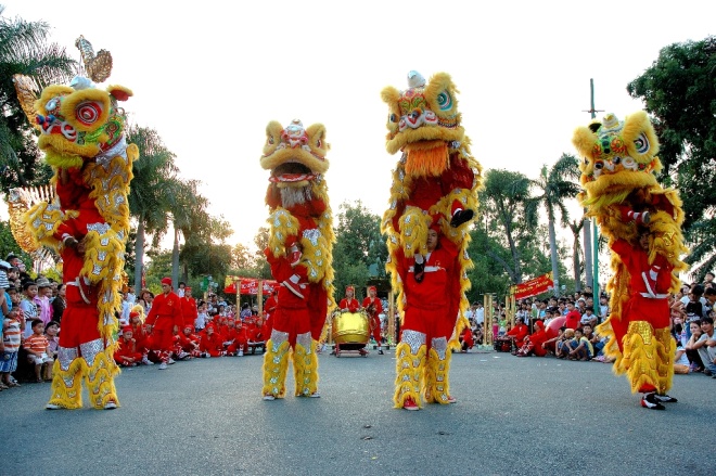 Tại công viên còn tổ chức giải Lân sư rồng TP HCM mở rộng, mang đến những màn trình diễn kỹ thuật đẹp mắt cho khán giả. Bạn có thể cảm nhận được không khí Tết rộn ràng khi vui chơi ở đây cả buổi sáng. Ảnh: Damsenpark.