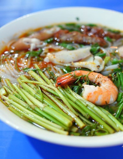 Bát bún đầy ăm ắp tôm tươi, ăn vừa ngon, lại ngọt, đủ no bụng cho bữa sáng trên biển. Ảnh: Haiphongaz.