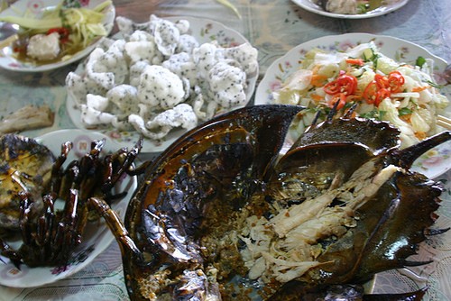 Sam biển còn có tên gọi là cua móng ngựa, dù trông chúng không có hình dạng giống loài cua chút nào. Do không thể nuôi mà phải bắt trong tự nhiên, đây là món ăn đảm bảo nguồn gốc, lại luôn tươi sống. Thịt sam là món ăn vừa lạ miệng, vừa giàu dinh dưỡng. Sam ở Cát Bà thường được chế biến thành nhiều món như tiết canh, súp, gỏi, xào, bao bột rán, nướng… ăn kèm với các gia vị nóng như riềng, sả, ớt.