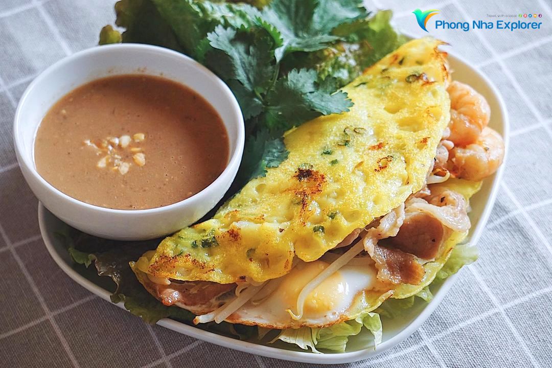 Ở Huế có một món bánh nổi tiếng nhưng lại bị nhiều du khách lần đầu tới nhầm lẫn với bánh xèo, đó chính là bánh khoai. So với bánh xèo thì bánh khoái có lớp vỏ bột nhỏ, dày và giòn hơn đồng thời nhân trong bánh khoái cũng cực kì đa dạng. Nếu bạn là một tín đồ của bánh tráng thì càng nên thử món này một lần.