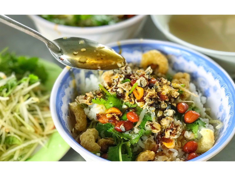 Món cơm hến gây thương nhớ không thôi với du khách có lẽ vì cái cay, cái đậm đà trong hương vị. Một bát cơm hến được coi là đúng chuẩn “Huế” thì cơm phải được để nguội qua đêm, như vậy cái giòn của rau và hương thơm của các gia vị mới có thể giữ lại trọn vẹn. ![]()