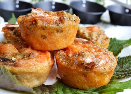 Đậu xanh đãi vỏ cho sạch, nấu chín mà không nát. Thịt heo băm nhuyễn, xào chín, trộn chung với đậu xanh. Sau cùng cho vào chút muối, chút bột nêm. Tôm tươi rửa sạch, để ráo, cắt bớt chân và râu. Tôm không nên bỏ vỏ vì lột vỏ đi chiên lên mất giòn.