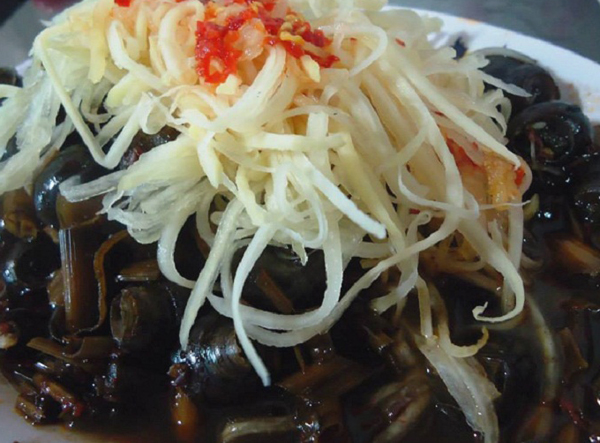 Ngoài món ốc tỏi nướng muối ớt được giới sành ăn gọi là “linh hồn” của quán, còn có nghêu hấp Thái mang vị cay nồng của ớt, phảng phất mùi thơm của sả cây cùng chén nước chấm đậm đà của gừng hòa quyện vào vị chua cay của chanh, ớt bằm khiến khách vừa ăn vừa xuýt xoa ấm bụng giữa tiết trời mưa lất phất vào buổi chiều muộn.