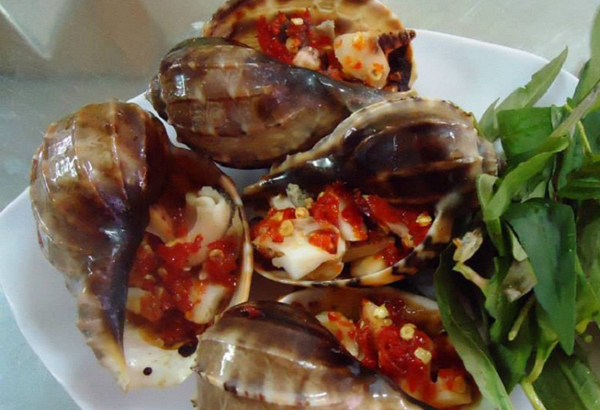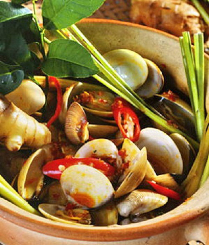 Món đặc biệt phải kể đến là nghêu hấp Thái nóng hổi, cùng mùi thơm nồng vị sả, ngọt vị nghêu và món ốc giác nấu càri ngon đúng điệu cùng với vị ngọt của thịt ốc, vị béo của càri và bí quyết nêm nếm gia vị nước chấm rất đặc trưng không nơi nào có được. Bạn cũng đừng quên ăn kèm với bánh.