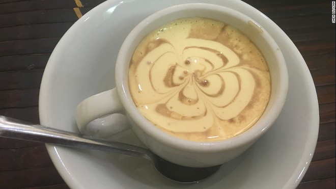 Cà phê trứng Việt Nam giống món ăn tráng miệng hơn là một đồ uống. Lớp kem ngậy từ trứng đánh đến bông trắng che đi phần cà phê đặc bên dưới.