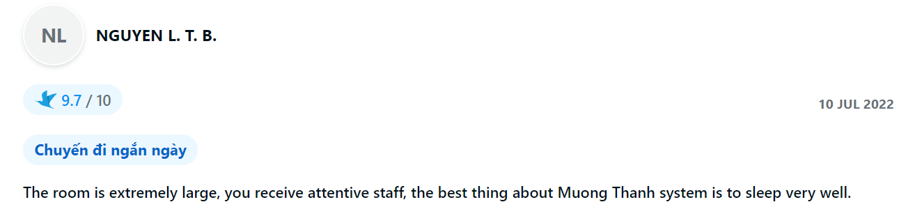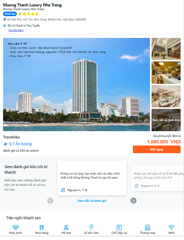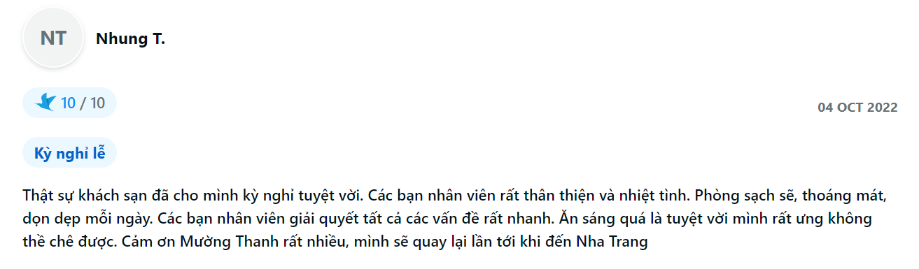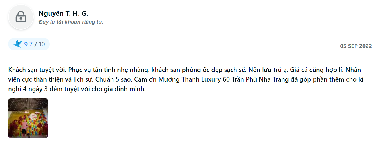 Tổng hợp một số đánh giá của du khách khi lưu trú tại khách sạn Mường Thanh Nha Trang Nguồn: @traveloka.com