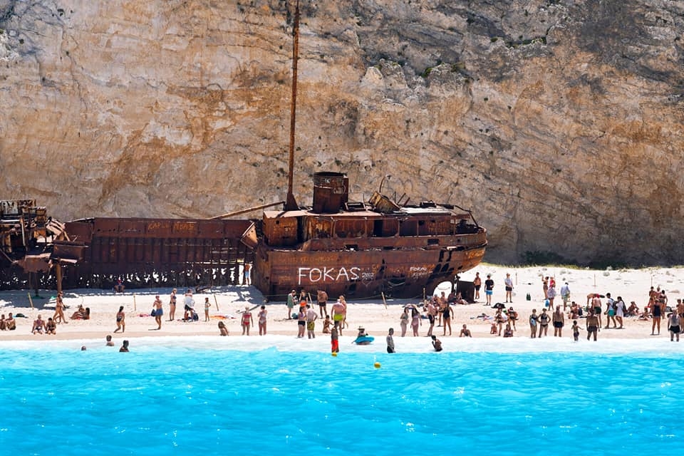Zakynthos có rất nhiều bãi tắm tuyệt đẹp, nổi tiếng nhất vẫn là Shipwreck Beach (Navagio Beach). Bãi biển có tên gọi khác là bãi Tàu Đắm, vì còn vướng xác một chiếc tàu buôn lậu bị đắm, dạt vào bãi biển. Nó nằm đây từ năm 1983, vẫn còn lưu giữ đến nay.