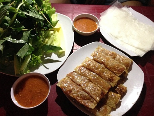 Đây là món ăn rất quen thuộc ở các cổng trường học hay dọc đường quanh thành phố. Tuy vậy, nổi tiếng nhất vẫn là bánh tráng nướng Góc Phố (trên đường Thủ Khoa Huân), ngã tư Trần Hưng Đại - Thủ Khoa Huân, ngã 3 Tam Biên gần cà phê Tiếng Xưa đường Trần Hưng Đạo, bánh tráng nướng trên đường Ngư Ông lối vào Vạn Thủy Tú… Giá một chiếc có chả lụa, trứng cút, hành mỡ, đậu phộng... là 5.000 đồng. Ảnh: Hồng Vi