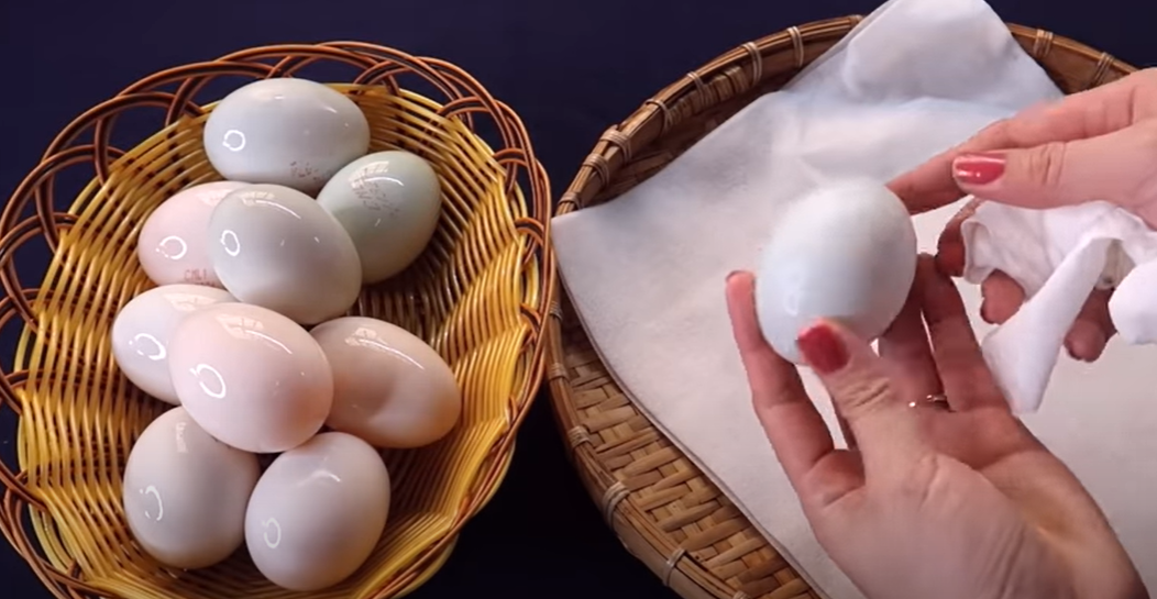 Bước 1: Rửa sạch, lau khô vỏ trứng (tránh bụi bẩn, nước rơi vào trứng ở bước sau).