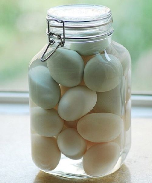 Nên ngâm trứng trong lọ thủy tinh để an toàn và bảo đảm sức khỏe.