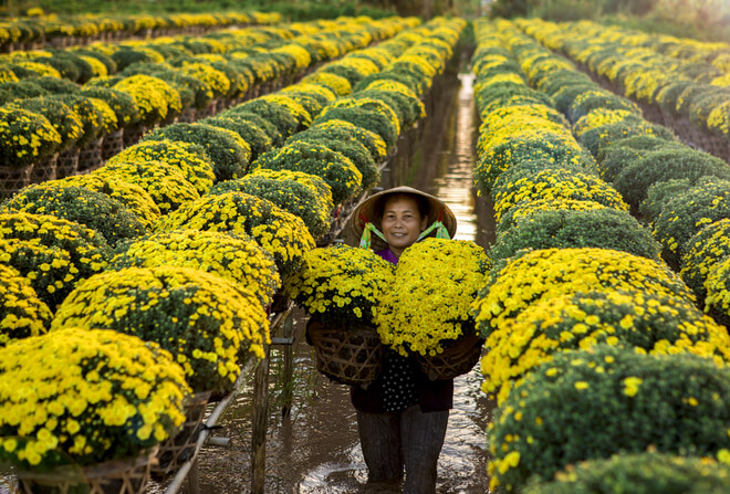 Hoa ở đây được trồng quanh năm và thời điểm rực rỡ nhất luôn là Tết Âm lịch.
