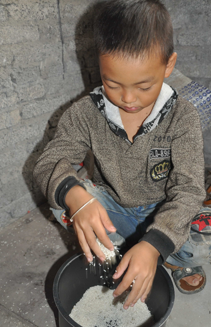 Không giống như các trẻ em cùng tuổi khác, Ou không hề có thời gian để chơi bời. Buổi chiều, em đi xung quanh trường và nơi mình sinh sống để nhặt phế liệu kiếm tiền. "Bố cần phải uống thuốc nhưng em không có tiền", cậu bé nói trên tờ China Youth Daily.