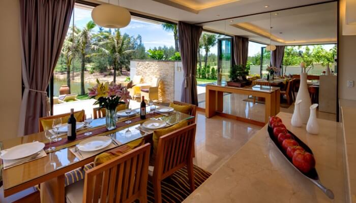 Nằm giữa 2 khu du lịch nổi tiếng là Đà Nẵng và Phố Cổ Hội An, ngoài nghỉ dưỡng gia đình bạn cũng dể dàng di chuyển tham quan các điểm du lịch tại Đà Nẵng và Hội An vô cùng tiện lợi. Khuôn viên của khách sạn The Ocean Villas Đà Nẵng rộng rãi bao gồm 115 căn hộ, mỗi căn hộ có diện tích từ 527 đến 1.105m2, trong phòng bài trí đẹp mắt, sang trọng, có nhiều phòng ngủ, nhà tắm, bể bơi riêng, khu vui chơi cho trẻ em và đặc biệt nhà bếp riêng có đầu bếp phục vụ theo sở thích ăn uống của từng quý khách. Ban công hướng biển hoặc sân golf do chính Greg Norman – tay golf nổi tiếng với biệt hiệu “Cá mập trắng” thiết kế vô cùng hiện đại và sang trọng.