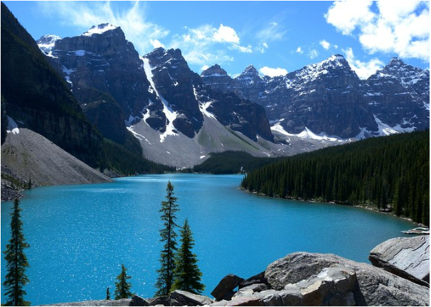 Núi đá Rockies: Dãy Canadian Rockies nằm về phía bờ Tây của quốc gia này là một điểm đến vô cùng thu hút khách du lịch. Phong cảnh núi tuyết hùng vĩ, những hàng thông xanh mướt mắt và các ngôi làng dưới chân núi nhộn nhịp luôn thu hút hàng triệu du khách mỗi năm.