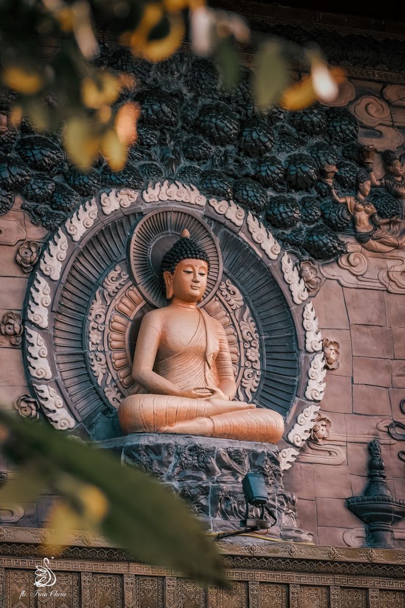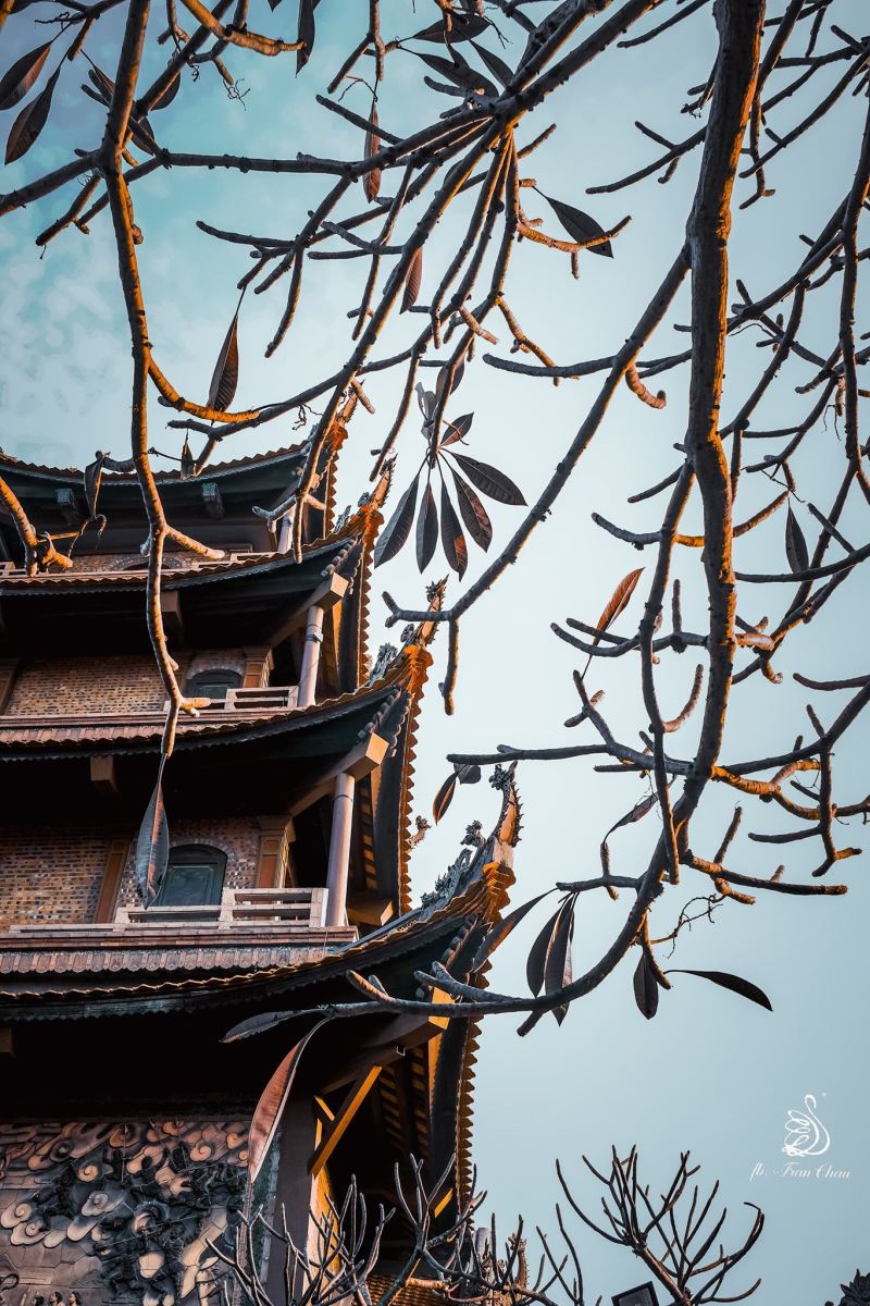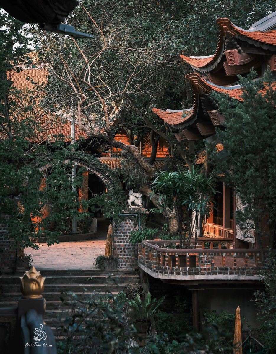 Phía sau tòa Tam Bảo là nhà thờ Tổ có 4 bức tượng rồng được đặt trên bậc thềm trước cửa. Phong cách trang trí trong nhà thờ Tổ chủ yếu bằng sứ với tông màu chủ đạo là cánh gián. Trong phòng chờ có đặt 5 bức tranh gốm sứ về luật nhân quả (ở phía trên) và bức tranh đầm sen mang vẻ đẹp cổ kính và tao nhã được ghép bằng nhiều mảnh gốm (ở phía dưới).
