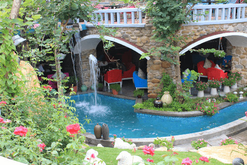 Không gian trong quán có máy lạnh và đầy đủ tiện nghi. Nơi đây có nhiều ngôi nhà được thiết kế bằng đá, gỗ, gạch đậm phong cách châu Âu. Bạn có thể vào đây gọi một tách cafe để thưởng thức và thư giãn sau những ngày làm việc căng thẳng và những bộn bề lo toan của cuộc sống.