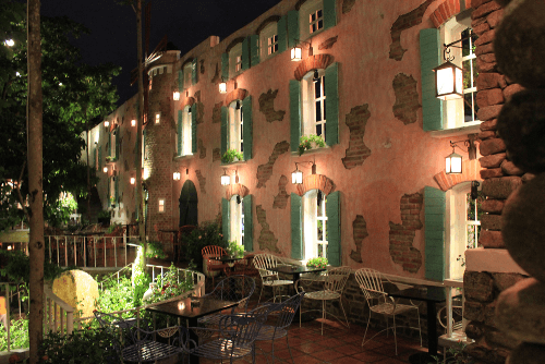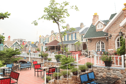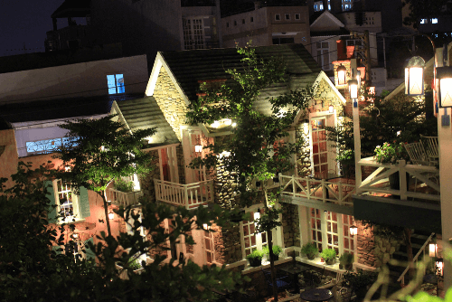 City House Cafe được thiết kế với 9 phố theo phong cách châu Âu, mỗi phố mang tên một loại hoa khác nhau với nhiều ống khói đặc trưng giữa khu rừng đầy cây xanh bóng mát.