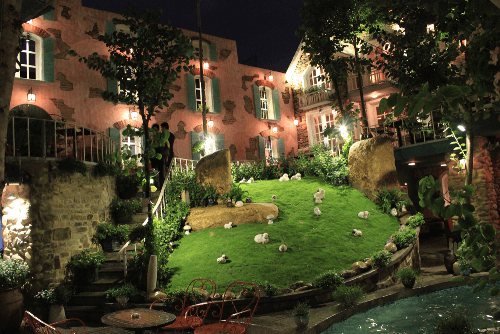Buổi tối, City House Cafe rực rỡ đèn, tạo nên một cảnh sắc thiên nhiên trong lành. Quán còn được trang trí mang đậm phong cách châu Âu với nhiều chú cừu đang ăn trên những bãi cỏ xanh mướt, xung quanh là cây lá xanh tươi và thác nước mát rượi.