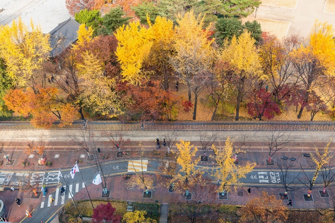 Con đường lá đỏ là một trong những biểu tượng của Seoul với 2 hàng cây thẳng tắp và những công trình kiến trúc cổ kính.