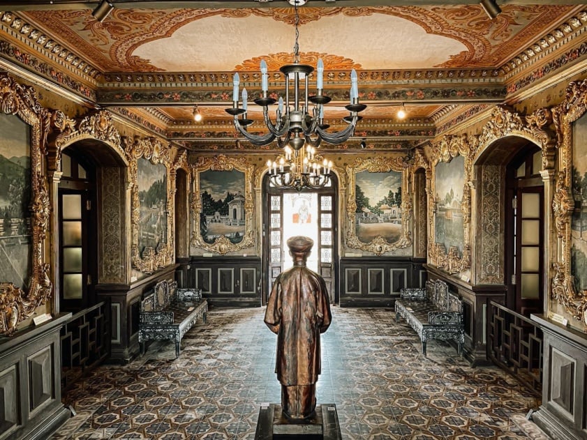 Được biết, lầu Khải Tường chính là kiến trúc chính của tổng thể khu vực, đã được phục chế bởi các chuyên gia Đức và cũng là nơi du khách có thể thỏa thích tham quan với tổng cộng 22 phòng lớn nhỏ. Trong đó, tầng 1 gồm 7 phòng được trang trí vô cùng lộng lẫy, lầu 2 là nơi gia đình vua sinh hoạt và tầng 3 với 7 phòng chính là nơi thờ tự.