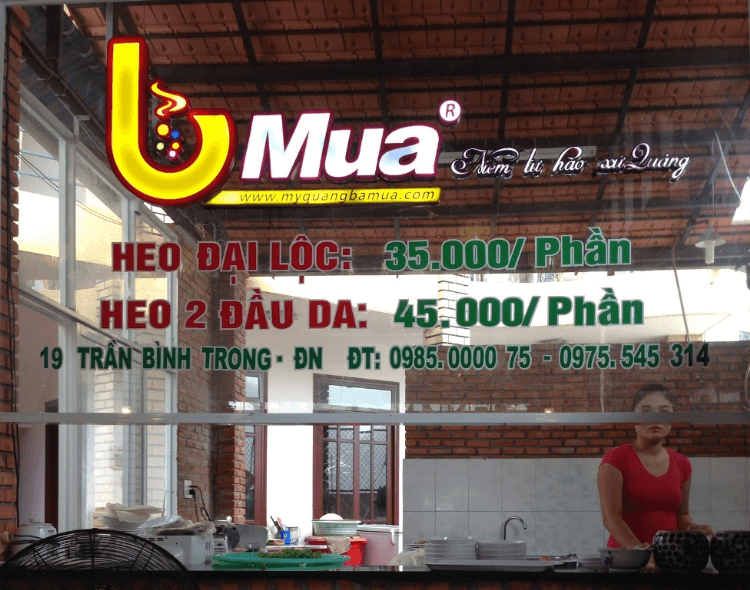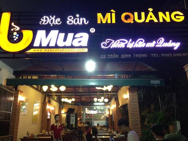 My Quang tai Da Nang – Một danh từ nghe thân thuộc, gần gũi, và gắn liền với cuộc sống người dân Đà Nẵng. Do đó, ở Đà Nẵng có rất nhiều địa điểm phục vụ món ăn đặc sản này, trong số đó phải nhắc đến Mì Quảng Bà Mua, là một địa điểm thưởng thức nổi tiếng ở Đà Nẵng.
