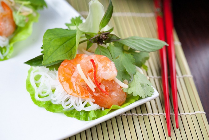 Tôm chua ăn kèm với rau sống để cảm nhận vị tôm chua đúng chất