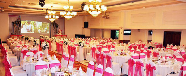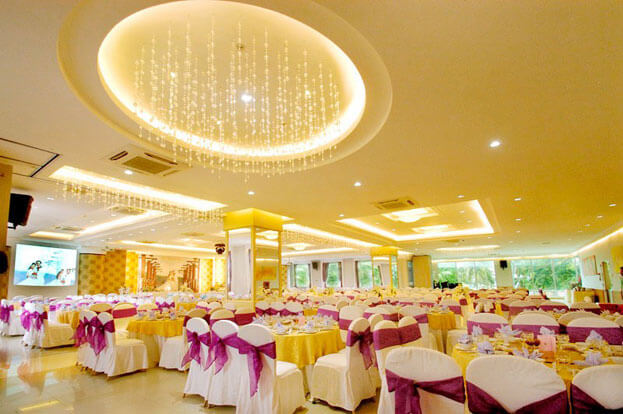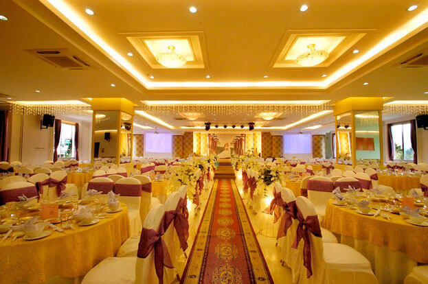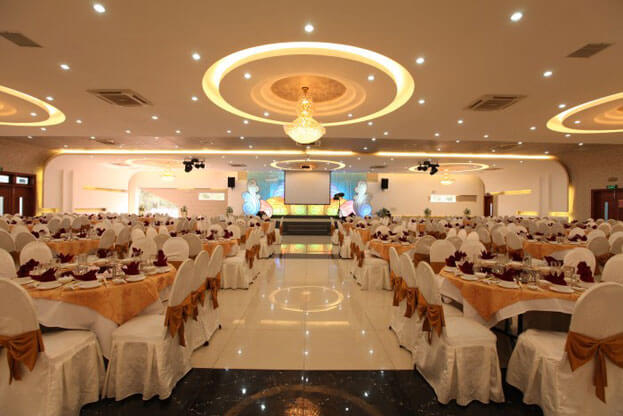 Nhà hàng tiệc cưới Yasaka Nha Trang vớ 5 sảnh tiệc hoành tráng cùng 2 khu vực ngoài trời thoáng đãng, tất cả đều được thiết kế và trang trí theo phong cách sang trọng tinh tế đầy ấm cúng nhằm mang đến sự gần gũi lãng mạn cho không gian tiệc cưới. Bên cạnh đó với phong cách phục vụ yến tiệc chuyên nghiệp cùng sự phong phú trong thực đơn món ăn nhà hàng tiệc cưới Yasaka chắc chắn sẽ mang đến sự hoàn hảo tuyệt đối cho tiệc cưới của đôi lứa.