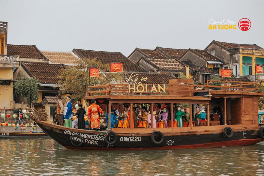 Đến công viên Ấn Tượng Hội An bằng tàu gỗ