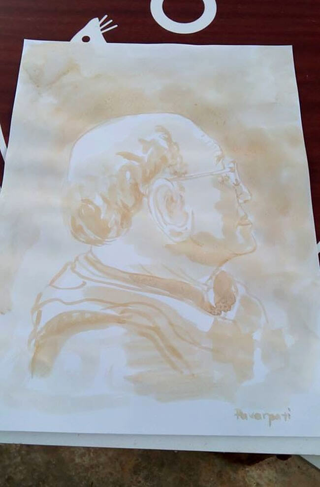 Tại cà phê Hầm - Đà Lạt còn có dịch vụ vẽ tranh từ cà phê. Đây là tác phẩm được họa sĩ của quán vẽ theo yêu cầu của một du khách.