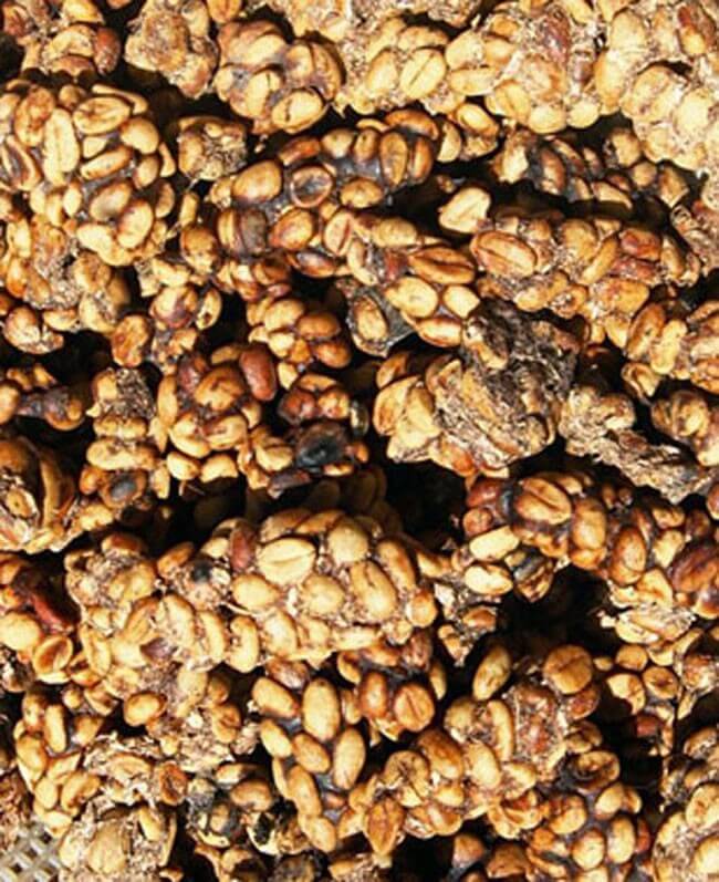 Phân chồn còn tươi được thu hoạch và làm sạch bằng nước.