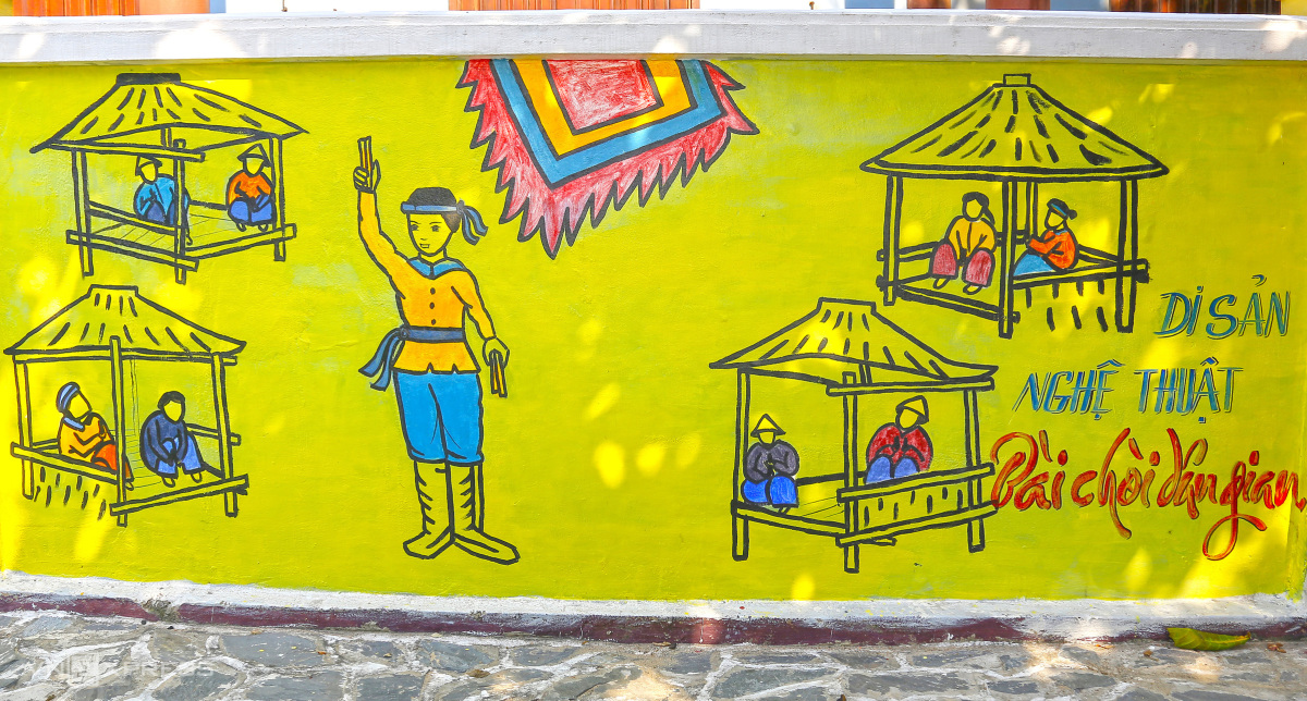Bức tranh tái hiện nghệ thuật bài chòi, di sản phi vật thể được UNESCO công nhận, loại hình nghệ thuật nổi tiếng ở tỉnh Bình Định.