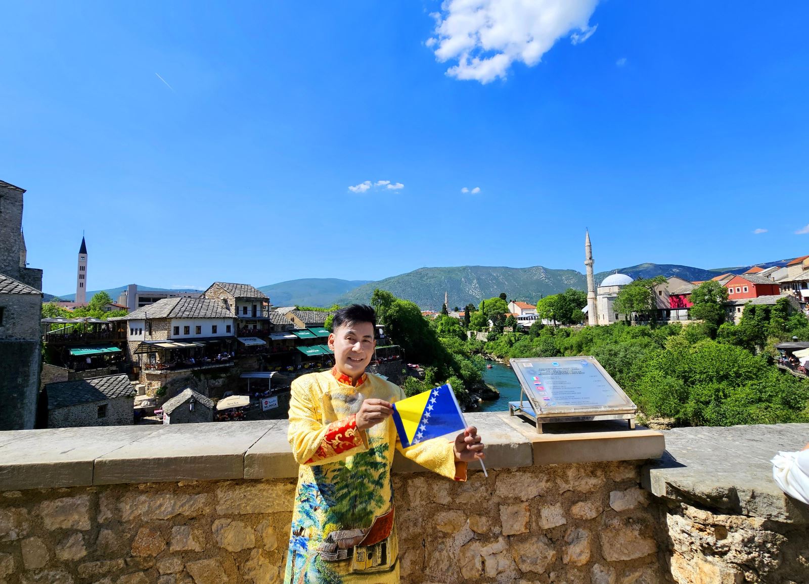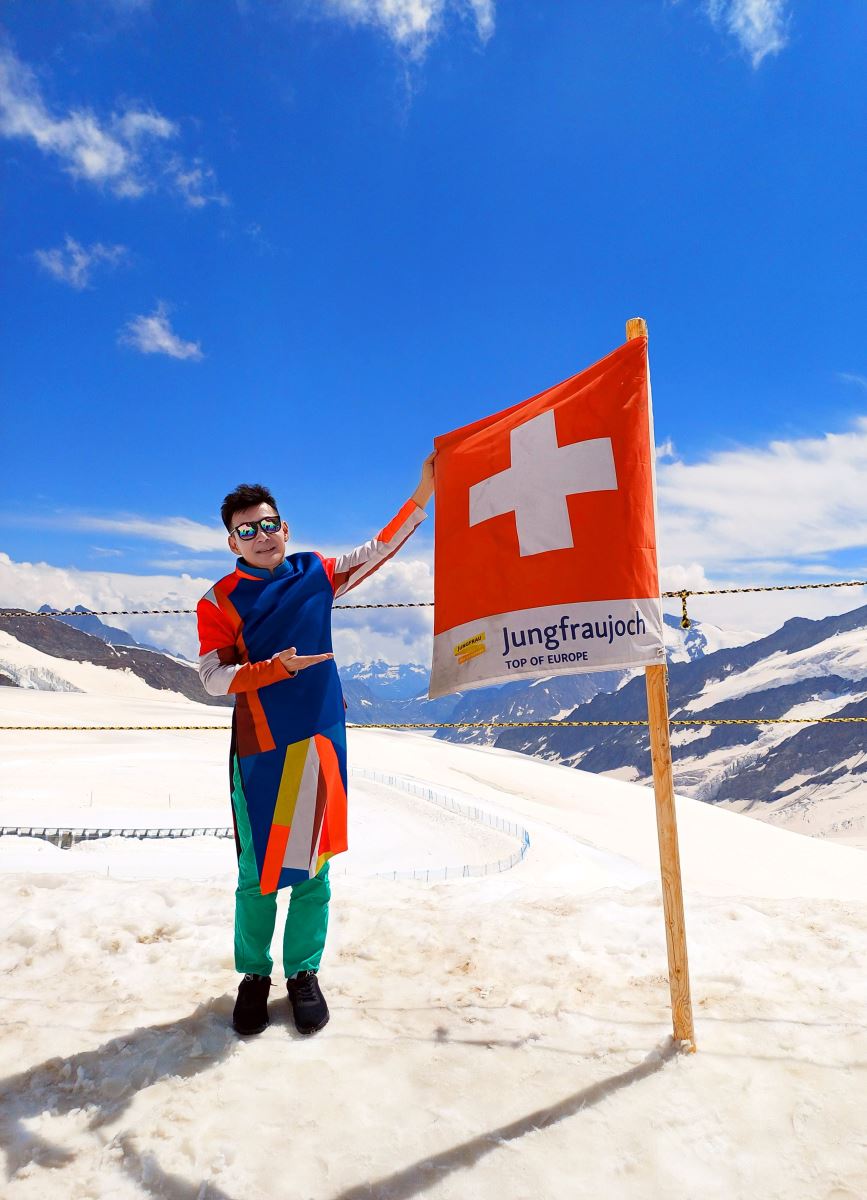 Có những bộ ảnh được chụp trong những hoàn ảnh đặc biệt mà anh luôn nhớ mãi, vì anh tự hào là người Việt đầu tiên mặc áo dài, như trên đỉnh núi đầy tuyết trắng Jungfrau, cao nhất châu Âu 4.158m tại Thụy Sỹ vào năm 2024, dù lúc đó anh bị choáng vì thiếu oxy.