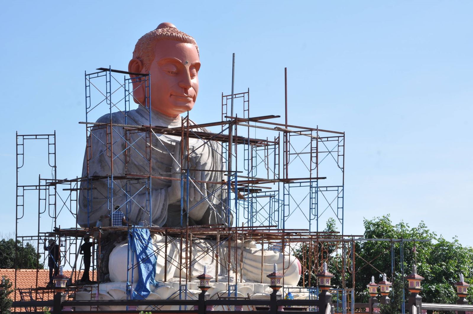 Tượng Đức Phật Thích Ca lộ thiên cao 14 mét trên ngọn đồi đang trong quá trình sửa chữa