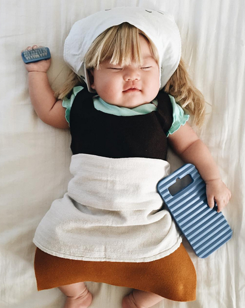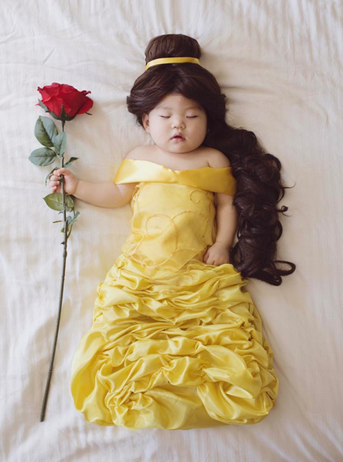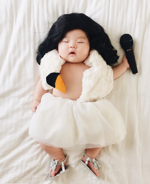 Bà mẹ người Mỹ đợi con ngủ say rồi thay các bộ đồ chế ngộ nghĩnh cho bé và ghi lại khoảnh khắc đáng yêu trong giấc ngủ.