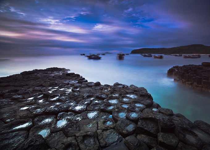 Những khối đá hình lăng trụ được xếp chồng lên nhau một cách ngay ngắn tựa như có bàn tay của vị thần nào đó sắp đặt, mang đến món quà vô giá cho Phú Yên. Gành đá trông giống như một tổ ong khổng lồ vô cùng kỳ vĩ.