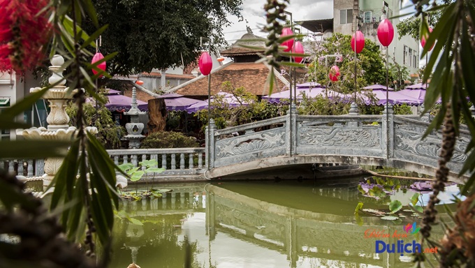 Những nét trạm khắc tinh tế của các nghệ nhân xứ Huế trên từng viên đá xanh nguyên khối, kiến trúc nhà cổ truyền thống của các triều đại Huế, điểm xuyết những chiếc đèn lồng đầy màu sắc, những cây cầu uốn mình quyến rũ kết nối giữa khu nhà cổ và khu sân vườn xanh mát với những bông hoa khoe sắc , những cây cổ thụ hàng trăm năm tuổi, đan xen những chiếc dù màu tím … kết hợp không khí trong lành, thơ mộng của phố núi Pleiku….Tất cả tạo nên một không gian yên bình, lãng mạn khiến du khách say mê đến nao lòng.