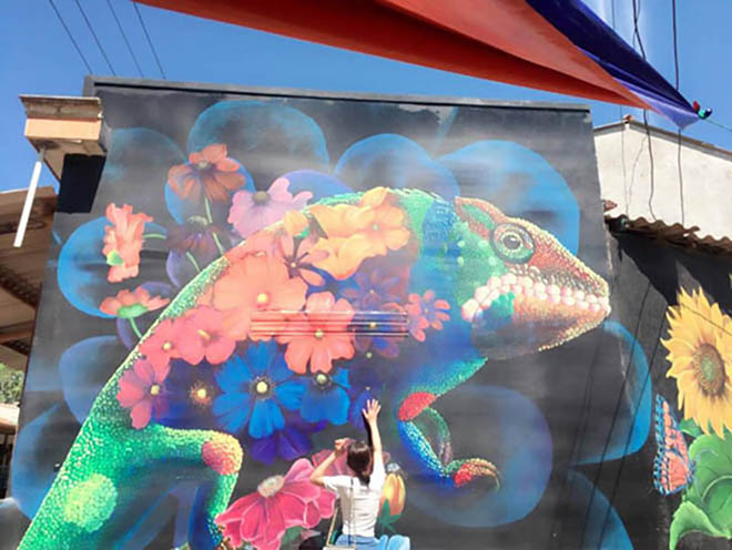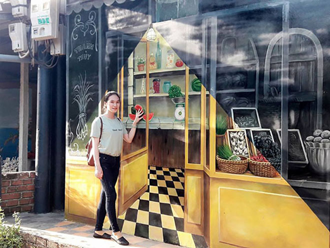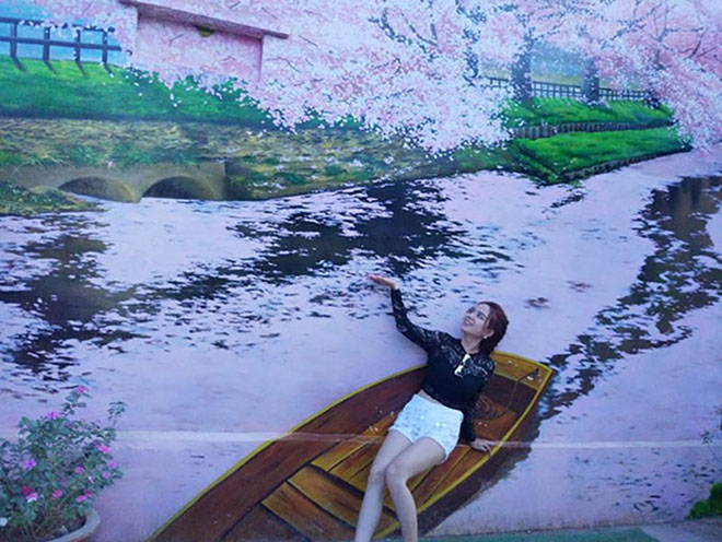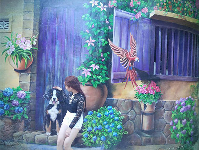 Một góc tuyệt đẹp tại ngôi làng bích họa 3D với bức bích họa sống động.