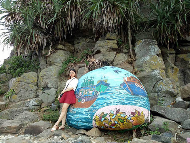Giờ đây tới Quảng Ngãi, ngoài không gian thiên nhiên biển trời hoang sơ gắn với cánh đồng bậc thang, bãi đá trầm tích núi lửa xếp chồng lên nhau kỳ thú ở Gành Yến bạn có thể ghé làng bích họa 3D để "check - in" sống ảo.