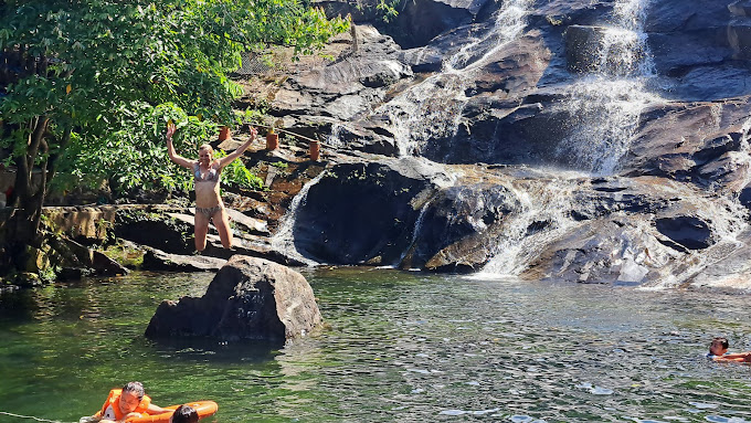Thác Nhị Hồ có không khí mát mẻ! Đẹp! Có chổ tắm cạn cho trẻ em và sâu cho người lớn. Món ăn ngon gà 300k, thuê sạp từ 50k đến 100k