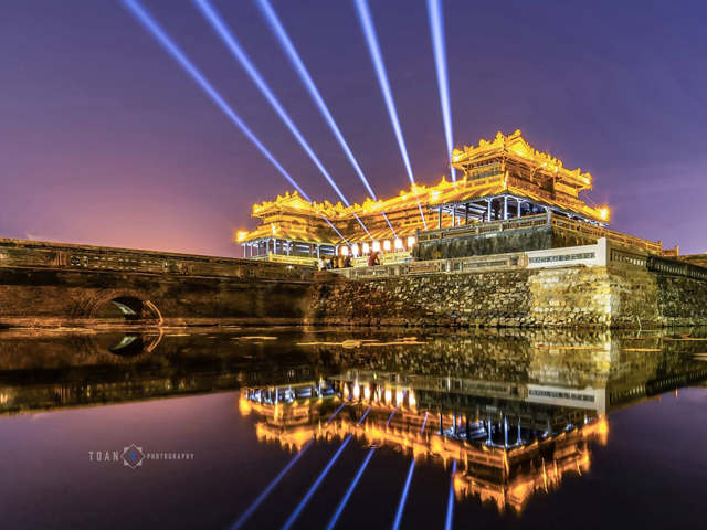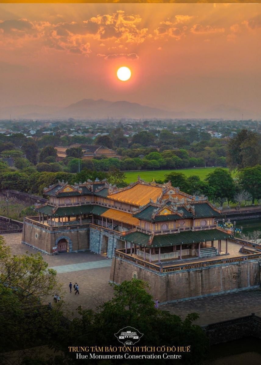 Nằm giữa lòng Huế, bên bờ Bắc của con sông Hương dùng dằng chảy xuyên qua từ Tây sang Đông, hệ thống kiến trúc biểu thị cho quyền uy của chế độ trung ương tập quyền Nguyễn vẫn đang sừng sững trước bao biến động của thời gian. Đó là Kinh thành Huế, Hoàng thành Huế, Tử cấm thành Huế, ba tòa thành lồng vào nhau được bố trí đăng đối trên một trục dọc xuyên suốt từ mặt Nam ra mặt Bắc. Hệ thống thành quách ở đây là một mẫu mực của sự kết hợp hài hòa nhuần nhuyễn giữa tinh hoa kiến trúc Đông và Tây, được đặt trong một khung cảnh thiên nhiên kỳ tú với nhiều yếu tố biểu tượng sẵn có tự nhiên đến mức người ta mặc nhiên xem đó là những bộ phận của Kinh thành Huế - đó là núi Ngự Bình, dòng Hương Giang, cồn Giã Viên, cồn Bộc Thanh... Nhìn từ phía ngược lại, những công trình kiến trúc ở đây như hòa lẫn vào thiên nhiên tạo nên những tiết tấu diệu kỳ khiến người ta quên mất bàn tay con người đã tác động lên nó.