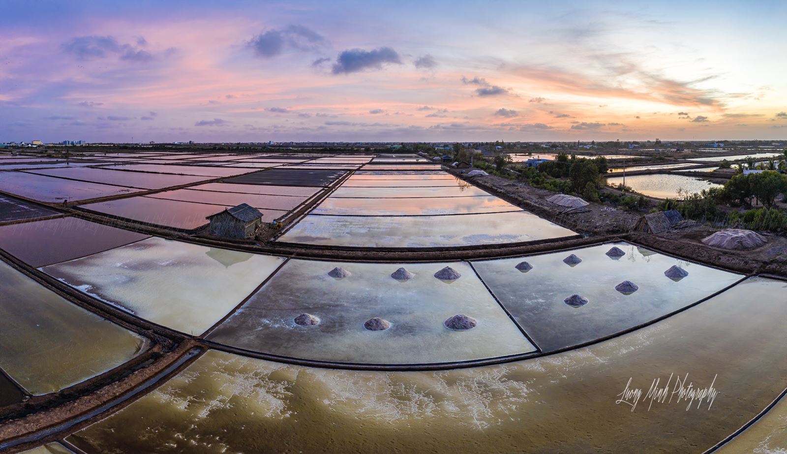 Những cánh đồng muối được chia thành từng ô, từng hàng, chạy dài thẳng tắp và lấp lánh trong ánh nắng. Bạn có thể ghé thăm những cánh đồng muối nơi đây vào khoảng tháng 12 đến tháng 4 hàng năm. Đây là thời điểm nước biển đạt độ mặn hợp lí, nắng vừa phải và ít có mưa bão nên người dân sẽ tập trung khai thác. Không chỉ có khung cảnh đẹp, cảnh tượng người dân nơi đây chăm chỉ, cần mẫn thu hoạch muối nhìn cũng thật duyên dáng và thu hút. Đến đây, du khách có thể thoải mái “sống ảo”, lưu lại những tấm ảnh đẹp cùng với bạn bè người thân. Bạn nên đến đây vào buổi sáng lúc bình minh hoặc buổi tối hoàng hôn để bắt được những khung cảnh đẹp nhất của cánh đồng muối.