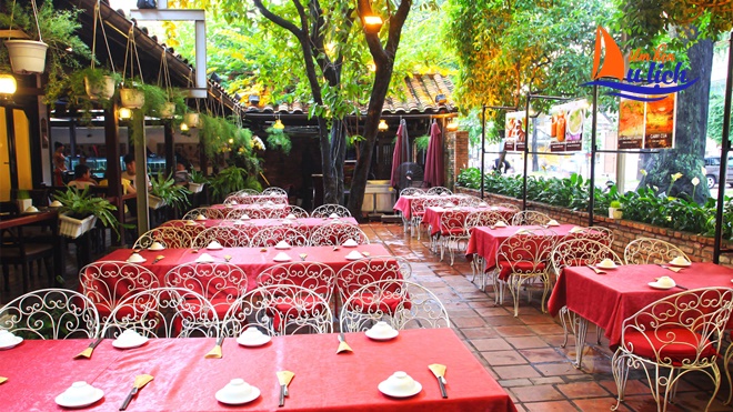 Khuôn viên sân vườn rợp trong những tán cây xanh, không khí luôn mát mẻ, trong lành. Là nơi lý tưởng cho những bữa ăn sáng hay café cùng bạn bè.
