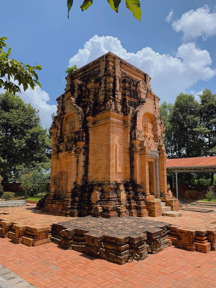 Ngoài ra, nền gạch trong lòng tháp Chóp Mạt cũng là gạch mới lát lại nhưng may mắn rằng, trong quá trình khảo ꜱáᴛ toàn bộ khuôn viên, người ta đã tìm thấy rất nhiều các phiến đá – phế tích của các bệ thờ, đã bị rêu phong phủ kín nên toát lên những nét cổ kính và trầm mặc đến lạ.