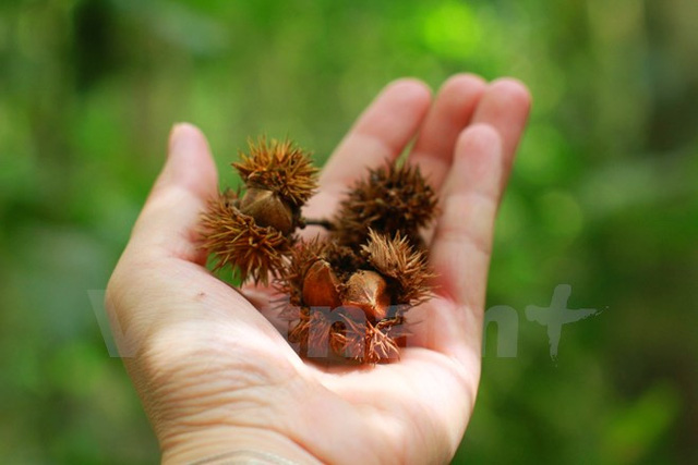 Ngoài lá phong, cũng không khó để bắt gặp những chùm quả dẻ như thế này. (Ảnh: Xuân Mai/Vietnam+)