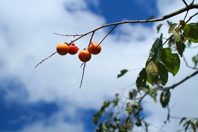Những trái hồng chín đỏ này đánh dấu cho chặng đường khám phá rừng phong của chúng tôi chính thức bắt đầu. (Ảnh: Xuân Mai/Vietnam+)