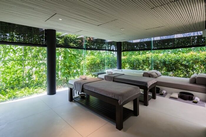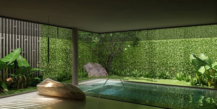 Tre, cây cỏ vốn là một trong những nét nổi bật trong thiết kế của resort, tuy nhiên, Pure Spa lại là khu vực riêng tư nhất. Đây là khu vực cần sự thư giãn và thoải mái cao nhất nên các nhà thiết kế tập trung nhiều trong phần cây xanh, tận dụng ánh sáng và gió tự nhiên một cách triệt để.